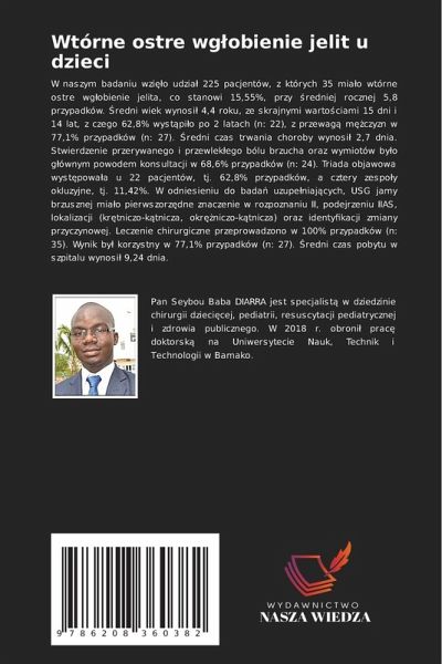 W naszym badaniu wzi¿¿o udziä 225 pacjentów, z których 35 miäo wtórne ostre wg¿obienie jelita, co stanowi 15,55%, przy ¿redniej rocznej 5,8 przypadków. ¿redni wiek wynosi¿ 4,4 roku, ze skrajnymi warto¿ciami 15 dni i 14 lat, z czego 62,8% wyst¿pi¿o po 2 latach (n: 22), z przewag¿ m¿¿czyzn w 77,1% przypadków (n: 27). ¿redni czas trwania choroby wynosi¿ 2,7 dnia. Stwierdzenie przerywanego i przewlek¿ego bólu brzucha oraz wymiotów by¿o g¿ównym powodem konsultacji w 68,6% przypadków (n: 24). Triada objawowa wyst¿powäa u 22 pacjentów, tj. 62,8% przypadków, a cztery zespo¿y okluzyjne, tj. 11,42%. W odniesieniu do badä uzupe¿niaj¿cych, USG jamy brzusznej miäo pierwszorz¿dne znaczenie w rozpoznaniu II, podejrzeniu IIAS, lokalizacji (kr¿tniczo-k¿tnicza, okr¿¿niczo-k¿tnicza) oraz identyfikacji zmiany przyczynowej. Leczenie chirurgiczne przeprowadzono w 100% przypadków (n: 35). Wynik by¿ korzystny w 77,1% przypadków (n: 27). ¿redni czas pobytu w szpitalu wynosi¿ 9,24 dnia.
