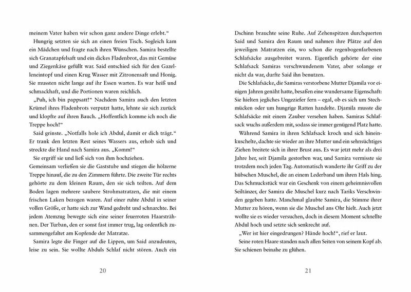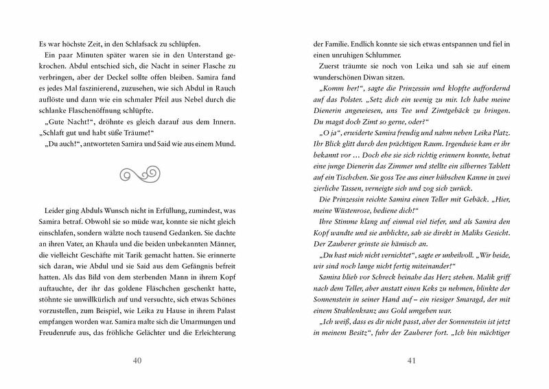 Im Kampf gegen den mächtigen Zauberer Malik hat Samira ihre Stärke bewiesen und dazu noch loyale Freunde gewonnen. Doch ihr Vater bleibt weiterhin verschwunden. Gemeinsam mit dem Dschinn Abdul und Said setzt sie ihre Suche fort. Dabei muss sie im Umgang mit ihrer Magie noch einiges lernen. Wird sie ihren Vater je wieder in die Arme schließen können?