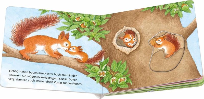 Die realistischen Bilder zeigen Tierkinder und ausgewachsene Tiere in ihrem Zuhause. Kurze Texte vermitteln erstes Sachwissen. So entdecken die Kleinsten spielerisch die spannende Welt der Tiere.