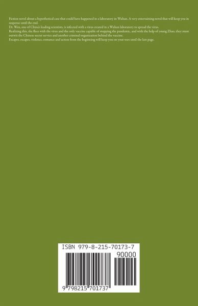 Fiction novel about a hypothetical case that could have happened in a laboratory in Wuhan. A very entertaining novel that will keep you in suspense until the end. Dr. Wen, one of China's leading scientists, is infected with a virus created in a Wuhan laboratory to spread the virus. Realizing this, she flees with the virus and the only vaccine capable of stopping the pandemic, and with the help of young Zhao, they must outwit the Chinese secret service and another criminal organization behind the vaccine. Escapes, escapes, violence, romance and action from the beginning will keep you on your toes until the last page.