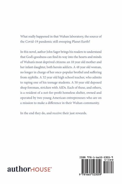 What really happened in that Wuhan laboratory, the source of the Covid-19 pandemic still sweeping Planet Earth? In this novel, author John Sager brings his readers to understand that God's goodness can find its way into the hearts and minds of Wuhan's most deprived citizens: an 18 year old mother and her infant daughter, both heroin addicts. A 48 year old woman, no longer in charge of her once-popular brothel and suffering from syphilis. A 32 year old high school teacher, who admits to raping one of his teenage students. A 50 year old deposed shop foreman, stricken with AIDs. Each of these, and others, is a resident of a not-for-profit homeless shelter, owned and operated by two young American entrepreneurs who are on a mission to make a difference in their Wuhan community. In the end they do, and receive their just rewards.