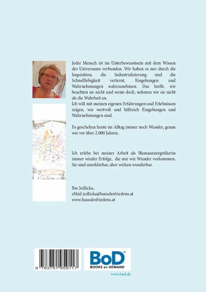 Jeder Mensch ist im Unterbewusstsein mit dem Wissen des Universums verbunden. Wir haben es nur durch die Inquisition, die Industrialisierung und die Schnelllebigkeit verlernt, Eingebungen und Wahrnehmungen wahrzunehmen. Das heißt, wir beachten sie nicht und wenn doch, nehmen wir sie nicht als die Wahrheit an.Ich will mit meinen eigenen Erfahrungen und Erlebnissen zeigen, wie wertvoll und hilfreich Eingebungen und Wahrnehmungen sind. Was mir auch sehr am Herzen liegt: es geschehen heute im Alltag immer noch Wunder, genau wie vor über 2.000 Jahren.Ich erlebe bei meiner Arbeit als Humanenergetikerin immer wieder Erfolge, die mir wie Wunder vorkommen. Sie sind nicht erklärbar, aber wirken wunderbar.