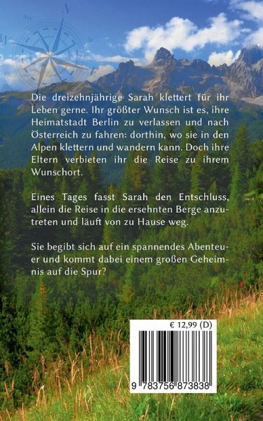 Eltern verbieten ihr ohne es zu begründen Reisen nach Österreich. So entschließt sie sich einen…mehrObwohl die 13-jährige Sarah mit ihrer Familie in Berlin, zieht es sie magisch in die österreichischen Berge. Klettern ist ihre Leidenschaft und obwohl es ihr Eltern nicht so gerne sehen, verbringt sie ihre Freizeit in der Kletterhalle. Ihre Tagträume führen sie immer wieder ins Gebirge. Doch ihre Eltern verbieten ihr ohne es zu begründen Reisen nach Österreich. So entschließt sie sich einen Schulausflug dazu zu nutzen allein in ihr Wunschland zu fahren.