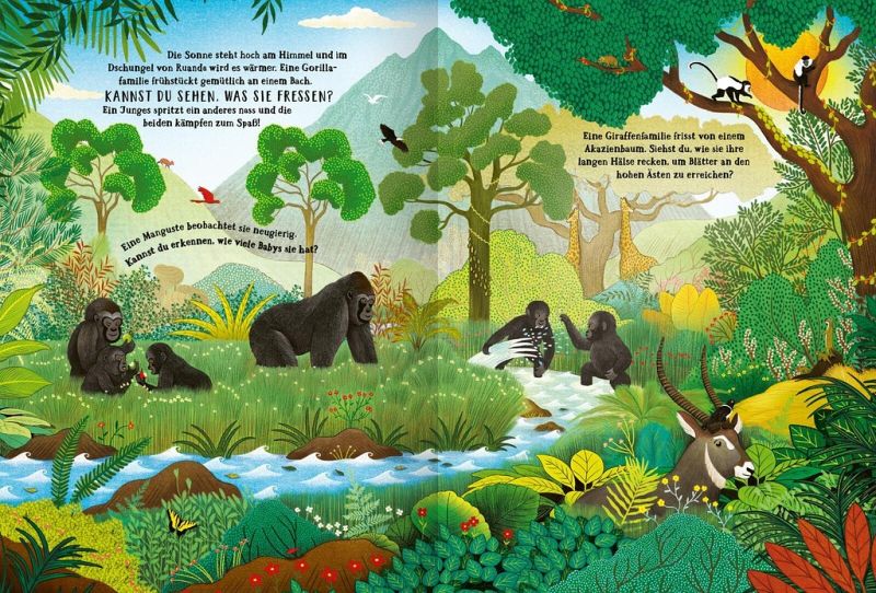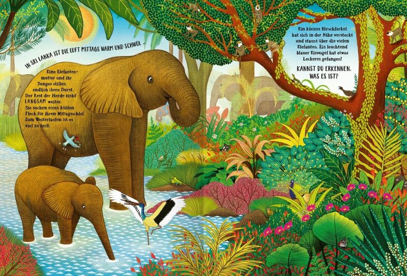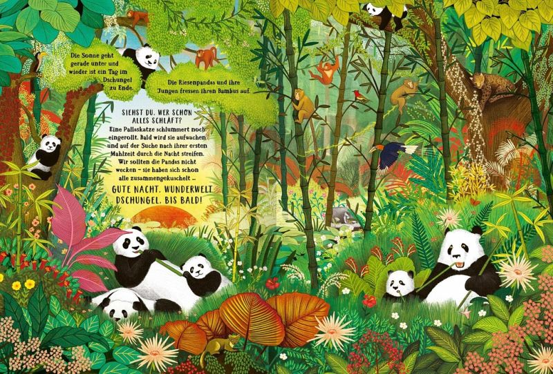 Den ganzen Tag und die ganze Nacht hindurch herrscht buntes Treiben in den Dschungeln dieser Welt. Entdeckst du die kleinen und großen Wunder des Dschungels, bevor sich die Tiere zum Schlafen zusammenrollen?
