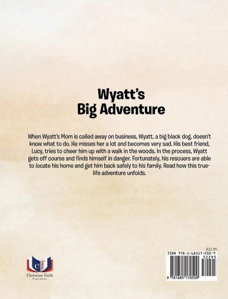When Wyatt's Mom is called away on business, Wyatt, a big black dog, doesn't know what to do. He misses her a lot and becomes very sad. His best friend, Lucy, tries to cheer him up with a walk in the woods. In the process, Wyatt gets off course and finds himself in danger. Fortunately, his rescuers are able to locate his home and get him back safely to his family. Read how this true-life adventure unfolds.