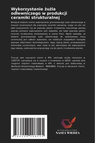 Niniejsze badanie ocenia wykorzystanie granulowanego ¿u¿la odlewniczego w masach ceramicznych dla przemys¿u ceramiki czerwonej, maj¿c na celu nie tylko przyczynienie si¿ do poprawy jako¿ci ¿rodowiska naturalnego planety poprzez ponowne wykorzystanie tych odpadów, ale tak¿e popraw¿ jako¿ci ceramiki strukturalnej produkowanej w stanie Piauí. Wyniki wykazäy, ¿e dodanie granulowanego ¿u¿la odlewniczego do podstawowej masy ceramicznej jest cäkiem wykonalne, aw niektórych przypadkach nast¿pi¿a poprawa w¿äciwo¿ci technologicznych, daj¿c lepsz¿ jako¿¿ produkowanych elementów ceramicznych, wi¿c mo¿e to by¿ alternatywa dla wykorzystania tego odpadu, jednocze¿nie przyczyniaj¿c si¿ do jako¿ci ¿rodowiska planety.
