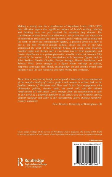 Contents: Introduction Andrzej Gasiorek Alice Reeve-Tucker and Nathan Waddell; Part I Friends and Enemies: 'Quotation' Alan Munton; Vorticism denied: Wyndham Lewis and the English Cubists Dominika Buchowska; In the 'enemy' camp: Wyndham Lewis Naomi Mitchison and Rebecca West Michael Hallam; The crisis of the system: Blast's reception Jodie Greenwood; John Rodker Julius Ratner and Wyndham Lewis: the split-man writes back Ian Patterson. Part II Media and Mass Society: Sound and the cultural politics of time in the avant-garde: Wyndham Lewis's critique of Bergsonism James G. Mansell; Modern times against western man: Wyndham Lewis Charlie Chaplin and cinema Scott W. Klein; 'The best in the worst of all possible worlds': corporate patronage in Wyndham Lewis's late work Alexander Ruch; Wyndham Lewis Evelyn Waugh and inter-war British youth: conflict and infantilism Alice Reeve-Tucker and Nathan Waddell. Part III Culture and Modernity: The culture theories of Wyndham Lewis and T.S Eliot Victor Barac; Wyndham Lewis on art culture and politics in the 1930s Andrzej Gasiorek; Wyndham Lewis and the uses of shellshock: meat and postmodernism Paul Edwards; Bibliography; Index.