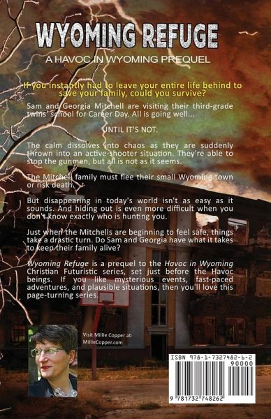 If you instantly had to leave your entire life behind to save your family, could you survive? Sam and Georgia Mitchell are visiting their third-grade twins' school for Career Day. All is going well...until it's not. The calm dissolves into chaos as they are suddenly thrown into an active-shooter situation. They're able to stop the gunmen, but all is not as it seems. The Mitchell family must flee their small Wyoming town or risk death. But disappearing in today's world isn't as easy as it sounds. And hiding out is even more difficult when you don't know exactly who is hunting you. Just when the Mitchells are beginning to feel safe, things take a drastic turn. Do Sam and Georgia have what it takes to keep their family alive? Wyoming Refuge is a prequel to the Havoc in Wyoming Christian Futuristic series, set just before the Havoc beings. If you like mysterious events, fast-paced adventures, and plausible situations, then you'll love this page-turning series. Grab your copy today and discover why readers love this twist on the Post-Apocalyptic genre! The Havoc in Wyoming series has been described as "Cozy" Apocalypse and contains no profanity, gratuitous sex scenes, or overly detailed gruesome death scenes. However, it does contain conservative family values and references to God, prayer, scripture, and Christianity. Books in the series and suggested reading order:Wyoming Refuge: A Havoc in Wyoming Prequel Caldwell's Homestead: Havoc in Wyoming, Part 1 Katie's Journey: Havoc in Wyoming, Part 2 Mollie's Quest: Havoc in Wyoming, Part 3 Shields and Ramparts: Havoc in Wyoming, Part 4 Havoc Begins: A Havoc in Wyoming Story Fowler's Snare: Havoc in Wyoming, Part 5 Havoc Rises: A Havoc in Wyoming Story Pestilence in the Darkness: Havoc in Wyoming, Part 6 Christmas on the Mountain: A Havoc in Wyoming Novella Havoc Peaks: A Havoc in Wyoming Story My Refuge and Fortress: Havoc in Wyoming, Part 7