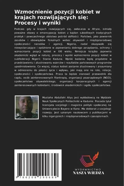 Podczas gdy w krajach rozwijaj¿cych si¿, zw¿aszcza w Afryce, istniäy powäne obawy o emancypacj¿ kobiet z kajdan szkodliwych tradycyjnych praktyk i powszechnego ubóstwa po¿ród obfito¿ci. Pästwo, jako powiernik zasobów i obowi¿zków fiskalnych wobec obywateli i mi¿dzynarodowej spo¿eczno¿ci narodów i agencji, Nigeria, nadal okazywäo si¿ niewystarczaj¿ce i opó¿nione w zapewnianiu dobrego zarz¿dzania, ochrony i wzmacniania pozycji kobiet w XXI wieku. Niniejsza ksi¿¿ka zapewnia akademicki wgl¿d w natur¿, procesy i wyniki wzmocnienia pozycji kobiet w subfederacji Nigerii: Stanie Kaduna. Wyniki badania b¿d¿ przydatne w przedstawieniu i zilustrowaniu wzorców i rezultatów pästwowych programów upodmiotowienia. Co wi¿cej, status kobiet zostanie zilustrowany i zrozumiany w odniesieniu do jako¿ci ¿ycia i wp¿ywu, jaki maj¿ one na role, relacje, spo¿eczno¿ci i spo¿ecze¿stwa. Praca ta b¿dzie stanowi¿ przewodnik dla rz¿du, osób zainteresowanych filantropi¿, organizacji pozarz¿dowych (NGO), spo¿ecze¿stwa obywatelskiego, organizacji korporacyjnych i agencji zainteresowanych kobietami, ¿rodowisk akademickich i ogó¿u spo¿ecze¿stwa.