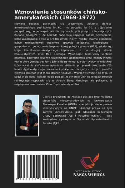 Niewielu badaczy po¿wi¿ci¿o si¿ zrozumieniu zbli¿enia chi¿sko-amerykäskiego pod koniec lat 60. i na pocz¿tku lat 70. z trójstronnej perspektywy, w jej aspektach historycznych, politycznych i teoretycznych. Badania George'a B. de Andrade podejmuj¿ dog¿¿bn¿ analiz¿ zjednoczenia, które zaszokowäo ¿wiat w ¿rodku zimnej wojny, mi¿dzy dwoma gigantami, którzy reprezentowali wzajemn¿ opozycj¿ polityczn¿, ideologiczn¿ i gospodarcz¿, zjednoczenie hegemonicznej pot¿gi systemu (USA), wiod¿cego kraju liberalno-demokratycznego kapitalizmu, a po drugiej stronie komunistycznych Chin Mao Zedonga. Wyjäniaj¿c historyczny kontekst zbli¿enia, polityczne niuanse towarzysz¿ce zjednoczeniu oraz, mi¿dzy innymi, teori¿ ofensywnego realizmu Johna Mearsheimera, autor tworzy kalejdoskop, który wyjänia chi¿sko-amerykäskie zbli¿enie po ponad dwudziestu (20) latach dyplomatycznego zerwania i politycznej niezgody z ró¿nych punktów widzenia (dlatego jest to trójstronne studium). W przeciwie¿stwie do tego, co s¿dzi wiele osób, ksi¿¿ka obala pogl¿d, ¿e otwarcie Chin na mi¿dzynarodow¿ reintegracj¿ rozpocz¿¿o si¿ w okresie Deng Xiaopinga, ale pokazuje, ¿e mi¿dzynarodowa zmiana Chin rozpocz¿¿a si¿ od Mao.