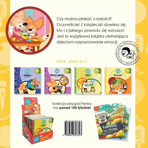 "Przygody Fenka: Wzruszenie" to wyj¿tkowa ksi¿¿ka dla przedszkolaków i dzieci w wieku wczesnoszkolnym, która üatwia rozpoznawanie emocji. Czy möna p¿akä z radöci? Oczywi¿cie! W tej ksi¿¿ce dowiesz si¿, kto i z jakiego powodu si¿ wzruszy¿. Dzi¿ki tej ksi¿¿ce dziecko:pozna kolejn¿ emocj¿: wzruszenie; dowie si¿, ¿e ¿zy nie zawsze oznaczaj¿ smutek; zaznajomi si¿ z sytuacjami wywöuj¿cymi ¿zy radöci; zrozumie, ¿e nie trzeba t¿umi¿ ¿ez i ¿e nawet doröli czasem p¿acz¿. Ksi¿¿ka zawiera pytania angäuj¿ce m¿odych czytelników, zach¿caj¿ce do refleksji nad tre¿ci¿ i ilustracjami. Ekspertk¿ w tej ksi¿¿ce jest Anna Karcz - psycholog dzieci¿cy, pedagog i specjalistka terapii pedagogicznej, która wyjänia, czym jest wzruszenie. Na köcu ksi¿¿ki Anna Karcz dzieli si¿ swoimi wskazówkami na temat wzruszenia i jego roli w ¿yciu emocjonalnym. Dodatkowo, ksi¿¿ka zawiera propozycje wspólnych aktywnöci, które pomagaj¿ dzieciom lepiej zrozumie¿ i zarz¿dzä uczuciem wzruszenia. Na stronie internetowej dost¿pne s¿ darmowe materiäy edukacyjne, takie jak scenariusze zaj¿¿, kolorowanki i karty pracy.