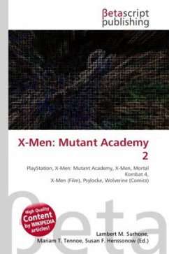 High Quality Content by WIKIPEDIA articles! X-Men: Mutant Academy 2 is a PlayStation video game, the sequel to X-Men: Mutant Academy. Both feature the X-MEN in a 3-D fighting arena similar to Mortal Kombat 4. Like its predecessor, the game allows the player to select from several heroes and villains and includes many of the signature moves from the comic. The game also includes a behind-the-scenes look at X-Men: The Movie concept sketches, costumes and other similar material.