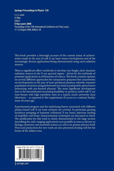 Progress in X-Ray Laser Facilities and Infrastructures.- Recent Progress in X-Ray Laser Research in JAEA.- Recent Advances on LASERIX Facility: Development of XUV Sources System and Applications. Perspectives from 2008 to 2010.- Recent Progress in Grazing-Incidence-Pumped X-Ray Lasers at Uni-BE.- Review on Recent High Intensity Physics Experiments Relevant to X-Ray and Quantum Beam Generation at JAEA.- Towards an 100 Hz X-Ray Laser Station.- Versatile High-Energy and Short-Pulse Operation of PHELIX.- Central Laser Facility High Power Laser Capabilities Applied to X-Ray Laser Science.- TARANIS: A Pump Source for X-Ray Lasers.- Photon Frontier Network.- Transient Collisional X-Ray Lasers.- Grazing Incidence Pumping (GRIP): Single- vs. Double- Pulse Arrangement.- An Improved Double-Pulse Non-Normal Incidence Pumping Geometry for Transient Collisionally Excited Soft X-Ray Lasers.- Generation of the Circularly Polarized X-Ray Laser Using the Pulse-Power Magnet.- Gain Saturation of the Ni-like Antimony Laser at 11.4 nm in Grazing-Incidence Pumping Geometry.- Temporal Coherence and Spectral Line Shape of a GRIP Transient X-Ray Laser.- High Repetition Rate X-Ray Lasers.- High Coherence Injection-Seeded Table-Top Soft X-Ray Lasers at Wavelengths Down to 13.2 nm.- Characterization of a Seeded Optical-Field Ionized Collisional Soft X-Ray Laser.- Investigation on the Spatial Properties of Silver X-Ray Laser Using GRIP Schemes.- Spatial Filtering of High Order Harmonics by an OFI Plasma Amplifier.- New Driver Laser System for Double Target X-Ray Lasers at JAEA.- Optical-Field-Ionised (OFI) X-Ray Lasers.- Toward Ultraintense Compact RBS Pump for Recombination 3.4 nm Laser via OFI.- High Brightness Optical-Field-Ionization X-Ray Lasers Driven in Plasma Waveguides.- Temporal Coherenceand Spectral Linewidth of a Seeded Soft X-Ray Laser Pulse.- Theory and Simulations.- The Scaling of Recombination Following Tunnel Ionisation and its Suitability for Generating X-Ray Laser Gain.- Advances in Understanding the Anomalous Dispersion of Plasmas in the X-Ray Regime.- Recent Developments on Seeded or Unseeded Transient X-Ray Lasers.- Influence of the number of atomic levels on the modelling of collisional X-ray lasers.- Modelling of Capillary Z-Pinch Recombination Pumping of Hydrogen-Like Ion EUV Lasers.- Propagation of a High-Harmonic Pulse Through a Population-Inverted Medium.- Modeling of an Ultra-Short X-Ray Laser Pulse Amplification Through an Optical-Field-Ionized Gas Using a Maxwell-Bloch Treatment.- Effects of Inhomogeneous Incident Line Focus on 2D Hydrodynamic Behaviour of X-Ray Laser Plasma on Slab.- Excitation Rates for Transitions in Ne-Like Ni XIX.- Conversion Efficiency Calculations for Soft X-Rays Emitted from Tin Plasma for Lithography Applications.- Theoretical Investigation of Photo-pumping X-Ray Lasers Using K? Line from Solid Target.- High Harmonic Generation (HHG).- Coherent Water-Window X-Ray Generation by Phase-Matched High Harmonics in Neutral Media.- Relativisitically Oscillating Mirrors - an Ultrabright Attosecond Source.- Spectral Characteristics of Strong High-Harmonics Generated in a Two-Color Laser Field.- Diffraction Limited Harmonic Emission from Laser Produced Plasmas.- XUV Optics and Applications of X-Ray Lasers.- X-Ray Lasers as Probes of Plasma Parameters.- Advances in Nanoscale Resolution Soft X-Ray Laser Microscopy.- Experimental Diagnosis of Plasma Jets by Using X-Ray Laser.- Soft X-Ray Holography with Wavelength Resolution.- Ablation Measurements Using Ni-Like Ag X-Ray Laser Transmission.- High SensitiveCharacterization of Microdomain Structures in PZN-PT (91/09) by Means of Coherent Soft X-Ray Laser Speckle.- Warm Photoionized Plasmas Created by Soft X-Ray Laser Irradiation of Solid Targets.- Development of Multilayer Optics in EUV, Soft X-Ray and X-Ray Range at IPOE.- Highly Efficient Surface Modification of Solids by Dual Action of XUV/Vis-NIR Laser Pulses.- Strand Breaks in DNA Samples Induced with LASERIX.- High Resolution X-Ray Laser Backlighting of Plasmas Using Spatial Filtering Technique.- Development of Soft X-Ray Fourier Transform Holography with Fresnel Zone Plate.- Lensless Imaging Using Table-Top Soft X-Ray Lasers and High Harmonics Sources Reaching 70 nm Resolution.- Gas Phase Study of The Reactivity of Optical Coating Materials with Hydrocarbons Using a Compact Soft X-Ray Laser.- Gas Phase Studies of Catalytic Processes Involving Vmon Clusters and their Reaction with Alcohols, Alkenes, Nox, and Nh3 Using a Desk-Top Size Soft X-Ray Laser.- Time-of-Flight Measurements of Ion and Electron from Xenon Clusters Irradiated with a Soft X-Ray Laser Pulse.- Calibration of a High Resolution Soft X-Ray Spectrometer.- XUV Probing as a Diagnostic of Rayleigh-Taylor Instability Growth.- Line Focus Geometry for Grazing Incidence Pumped X-Ray Lasers.- Resolution and Feature Size Assessment in Soft X-Ray Microscopy Images.- An Approach to the Generation of Uniform Line Foci for Use in X-Ray Laser Experiments.- Interferometric Lithography with a Desk-Top Size Soft X-Ray Laser.- Time-Resolved Fluorescence Spectrum of Wide-Gap Semiconductors Excited by 13.9 nm X-Ray Laser.- Alternative Approaches for Sources of Bright X-Rays.- Application of Extremely Bright and Coherent Soft and Hard X-Ray Free-Electron Laser Radiation.- Design Study of Compact Thomson X-Ray Sources for Material and Life Sciences Applications.- An Attempt to Generate an Inner-Shell Photo-Ionisation Pumped X-Ray Laser Using the ASTRA Laser at RAL.- Electron Self-Injection and Radiation in the Laser Plasma Accelerator.- Emission Spectroscopy from an XUV Laser Irradiated Solid Target.- Innershell X-Ray Laser in Sodium Vapor: Final Steps Towards Experimental Verification.