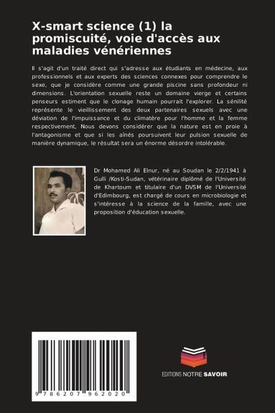 Il s'agit d'un traité direct qui s'adresse aux étudiants en médecine, aux professionnels et aux experts des sciences connexes pour comprendre le sexe, que je considère comme une grande piscine sans profondeur ni dimensions. L'orientation sexuelle reste un domaine vierge et certains penseurs estiment que le clonage humain pourrait l'explorer. La sénilité représente le vieillissement des deux partenaires sexuels avec une déviation de l'impuissance et du climatère pour l'homme et la femme respectivement, Nous devons considérer que la nature est en proie à l'antagonisme et que si les aînés poursuivent leur pulsion sexuelle de manière dynamique, le résultat sera un énorme désordre intolérable.