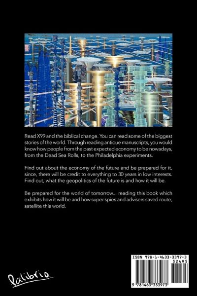 Read X99 and the biblical change. You can read some of the biggest stories of the world. Through reading antique manuscripts, you would know how people from the past expected economy to be nowadays, from the Dead Sea Rolls, to the Philadelphia experiments. Find out about the economy of the future and be prepared for it, since, there will be credit to everything to 30 years in low interests. Find out, what the geopolitics of the future is and how it will be. Be prepared for the world of tomorrow... reading this book which exhibits how it will be and how super spies and advisers saved route, satellite this world.