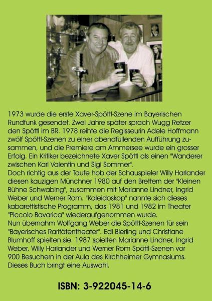 Ein Schauspieler hat das ¿gewisse Gespür¿ dafür, was beim Publikum ankommt und was nicht. Wenn es darüber hinaus auch noch literarisch ist, umso besser. Als ich Werner Schlierfs ¿Xaver Spöttl¿ 1978 zum ersten Mal las, spürte ich, dass diese Figur Aussage hat. Und deshalb spielte ich sie auch. Und der Erfolg gab mir Recht. Xaver Spöttl ist ein Münchner, der kritisch denkt, ohne eine politische Richtung zu vertreten. Er lässt sich also die Freiheit offen, nach rechts und links zu schießen. Und das ist das Menschliche an ihm. Im Vordergrund steht immer der Mensch. Das ist sein Anliegen und daran hält er fest. Dass er zwischendurch auch melancholisch und philosophisch ist ¿ und wer ist das schon nicht ¿ macht ihn umso liebenswerter. Ein Rezensent bezeichnete Xaver Spöttl einmal als ¿Wanderer zwischen Karl Valentin und Sigi Sommer¿. Vergleiche hinken zwar meist, aber dieser scheint mir gut getroffen zu sein. Ich jedenfalls schlüpfe gerne in die Rolle dieses kauzigen Münchners, den 1980 auf der ¿Kleinen Bühnen Schwabing¿, zusammen mit Marianne Lindner und Werner Rom aus der Taufe hob.