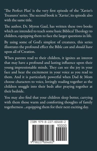 'The Perfect Plan' is the first episode of the 'Xavier's Treasures' series, edited December 2025. The second book is 'Xavier', its episode also with the same title. The author, Dr. Myron Gaul, has written these two books which are intended to teach basic Biblical Theology to children, equipping them to face the larger questions in life. By using the simplest of creatures, this series illustrates the profound effect the Bible can and should have upon all of Creation. When parents read to their children, it ignites an interest that may have a profound and lasting influence upon their young impressionable minds. They can see the joy in your face and hear the excitement in your voice as you read to them. And it is particularly powerful when Dad & Mom choose characters to voice, lovingly reading together as the children snuggle into their beds after praying together at their bedside. You may also find that they sleep better, carrying with them those warm and comforting thoughts of the family being together ...equipping them for their next exciting day.