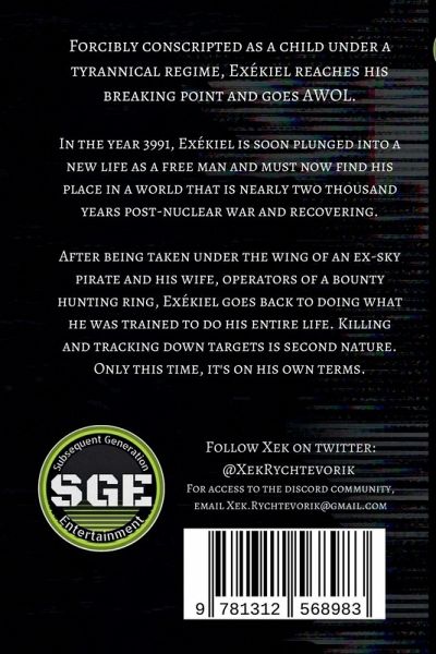 Forcibly conscripted as a child under a tyrannical regime, Exékiel reaches his breaking point and goes AWOL. In the year 3991, Exékiel is soon plunged into a new life as a free man, and must now find his place in a world that is nearly two thousand years post-nuclear war and recovering. After being taken under the wing of an ex-sky pirate and his wife, operators of a bounty hunting ring, Exékiel goes back to doing what he was trained to do his entire life. Killing and tracking down targets is second nature. Only this time, it's on his own terms.