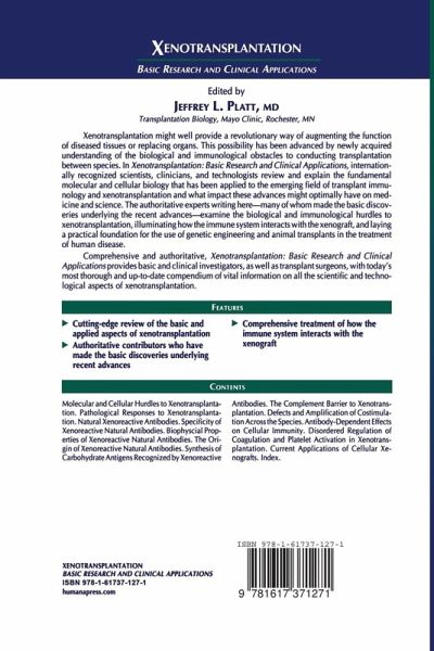 "This book provides a useful and concise review of the current status of xenotransplantion and introduces the reader to the remaining required developments before effective implementation of xenotransplantation can occur...The editor and authors are recognized authorities in the field of xenotransplantation and this book is an important addition to existing literature on this topic" - Doody's Health Sciences Book Review Journal