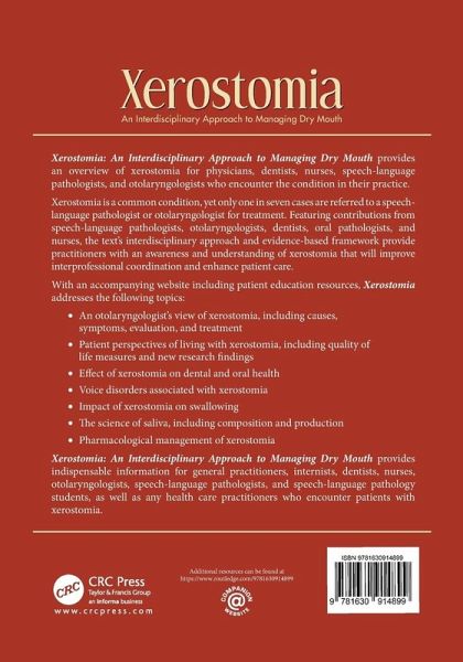 An interdisciplinary textbook on dry mouth, Xerostomia: An Interdisciplinary Approach to Managing Dry Mouth provides an overview of xerostomia for physicians, dentists, nurses, speech-language pathologists, and otolaryngologists who encounter the condition in their practice.