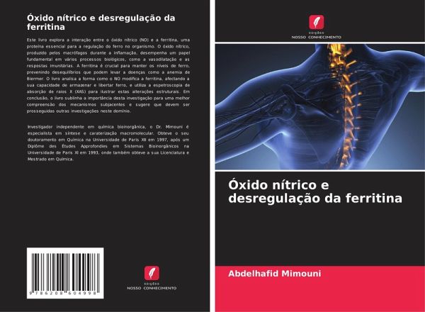 Este livro explora a interação entre o óxido nítrico (NO) e a ferritina, uma proteína essencial para a regulação do ferro no organismo. O óxido nítrico, produzido pelos macrófagos durante a inflamação, desempenha um papel fundamental em vários processos biológicos, como a vasodilatação e as respostas imunitárias. A ferritina é crucial para manter os níveis de ferro, prevenindo desequilíbrios que podem levar a doenças como a anemia de Biermer. O livro analisa a forma como o NO modifica a ferritina, afectando a sua capacidade de armazenar e libertar ferro, e utiliza a espetroscopia de absorção de raios X (XAS) para ilustrar estas alterações estruturais. Em conclusão, o livro sublinha a importância desta investigação para uma melhor compreensão dos mecanismos subjacentes e sugere que devem ser prosseguidas outras investigações neste domínio.