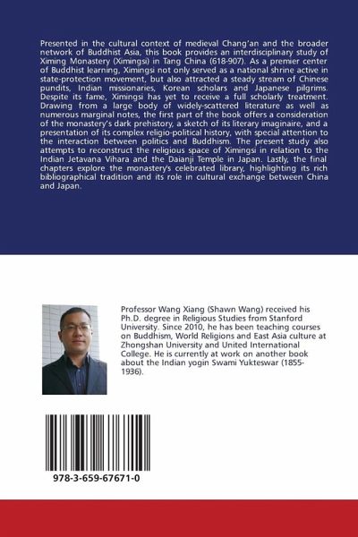 Presented in the cultural context of medieval Chang an and the broader network of Buddhist Asia, this book provides an interdisciplinary study of Ximing Monastery (Ximingsi) in Tang China (618-907). As a premier center of Buddhist learning, Ximingsi not only served as a national shrine active in state-protection movement, but also attracted a steady stream of Chinese pundits, Indian missionaries, Korean scholars and Japanese pilgrims. Despite its fame, Ximingsi has yet to receive a full scholarly treatment. Drawing from a large body of widely-scattered literature as well as numerous marginal notes, the first part of the book offers a consideration of the monastery s dark prehistory, a sketch of its literary imaginaire, and a presentation of its complex religio-political history, with special attention to the interaction between politics and Buddhism. The present study also attempts to reconstruct the religious space of Ximingsi in relation to the Indian Jetavana Vihara and the Daianji Temple in Japan. Lastly, the final chapters explore the monastery's celebrated library, highlighting its rich bibliographical tradition and its role in cultural exchange between China and Japan.