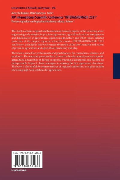 This book contains original and fundamental research papers in the following areas: engineering technologies for precision agriculture, agricultural systems management and digitalization in agriculture, logistics in agriculture, and other topics. Selected materials of the largest regional scientific event-INTERAGROMASH 2021 conference-included in this book present the results of the latest research in the areas of precision agriculture and agricultural machinery industry.
