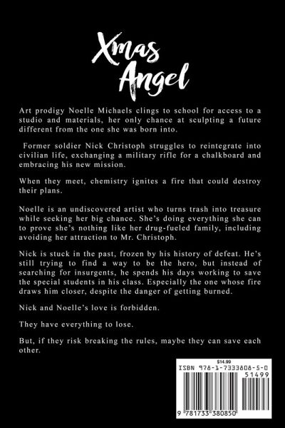 Art prodigy Noelle Michaels clings to school for access to a studio and materials, her only chance at sculpting a future different from the one she was born into. Former soldier Nick Christoph struggles to reintegrate into civilian life, exchanging a military rifle for a chalkboard and embracing his new mission. When they meet, chemistry ignites a fire that could destroy their plans. Noelle is an undiscovered artist who turns trash into treasure while seeking her big chance. She's doing everything she can to prove she's nothing like her drug-fueled family, including avoiding her attraction to Mr. Christoph. Nick is stuck in the past, frozen by his history of defeat. He's still trying to find a way to be the hero, but instead of searching for insurgents, he spends his days working to save the special students in his class. Especially the one whose fire draws him closer, despite the danger of getting burned. Nick and Noelle's love is forbidden. They have everything to lose. But, if they risk breaking the rules, maybe they can save each other.
