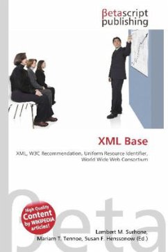 Please note that the content of this book primarily consists of articles available from Wikipedia or other free sources online. XML Base is a World Wide Web Consortium recommended facility for defining base URIs for parts of XML documents. XML Base recommendation was adopted on 2001-06-27. The attribute xml:base may be inserted in XML documents to specify a base URI other than the base URI of the document or external entity. The value of this attribute is interpreted as a URI Reference as defined in RFC 3986. It serves the function described in section 5.1.1 of RFC3986, establishing the base URI (or IRI) for resolving any relative references found within the effective scope of the xml:base attribute. A W3C Recommendation is the final stage of a ratification process of the World Wide Web Consortium (W3C) working group concerning the standard.