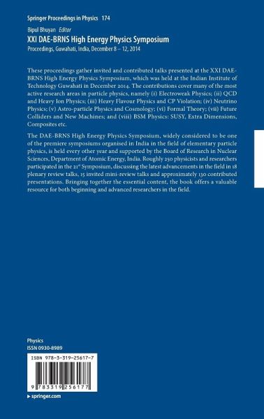 The DAE-BRNS High Energy Physics Symposium, widely considered to be one of the premiere symposiums organised in India in the field of elementary particle physics, is held every other year and supported by the Board of Research in Nuclear Sciences, Department of Atomic Energy, India. Roughly 250 physicists and researchers participated in the 21st Symposium, discussing the latest advancementsin the field in 18 plenary review talks, 15 invited mini-review talks and approximately 130 contributed presentations. Bringing together the essential content, the book offers a valuable resource for both beginning and advanced researchers in the field.