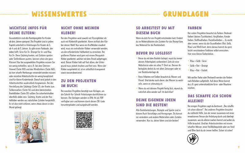 Die Grundanleitungen für Bastelkleber, Knete und Salzteig sowie Bastel- und Spielideen für Kinder in einem Buch vereint - zum einfachen Nachmachen mit Alltagsmaterialien, die jeder zu Hause hat. Ob Drehtrommel, Quasten-Girlanden, Nachtlampen und Schlüsselanhänger sowie Sterne & Schneeflocken und Jahreszeitengläser, es ist für jeden etwas dabei! Für coole Schützengibt es eine Torwand zum Selberbasteln und Gestalten, Pocket Games oder ein lustiges Angelspiel dürfen auch nicht fehlen. Der Bastelspaß ist mit Ideen für Drinnen und Draußen garantiert!