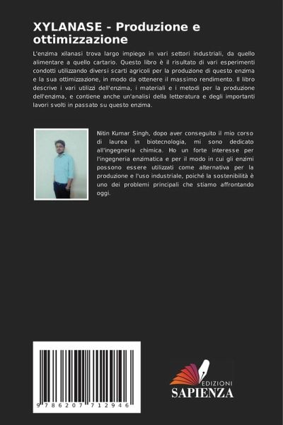 L'enzima xilanasi trova largo impiego in vari settori industriali, da quello alimentare a quello cartario. Questo libro è il risultato di vari esperimenti condotti utilizzando diversi scarti agricoli per la produzione di questo enzima e la sua ottimizzazione, in modo da ottenere il massimo rendimento. Il libro descrive i vari utilizzi dell'enzima, i materiali e i metodi per la produzione dell'enzima, e contiene anche un'analisi della letteratura e degli importanti lavori svolti in passato su questo enzima.