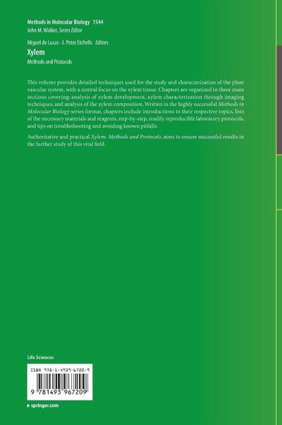 This volume provides detailed techniques used for the study and characterization of the plant vascular system, with a central focus on the xylem tissue. Chapters are organized in three main sections covering; analysis of xylem development, xylem characterization though imaging techniques, and analysis of the xylem composition. Written in the highly successful Methods in Molecular Biology series format, chapters include introductions to their respective topics, lists of the necessary materials and reagents, step-by-step, readily reproducible laboratory protocols, and tips on troubleshooting and avoiding known pitfalls.