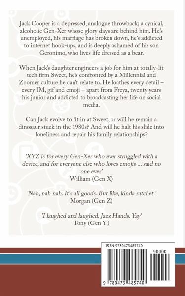 Generation X technical whiz, Jack Cooper is an unemployed, workplace dinosaur. Grumpy and sarcastic, he would rather seal his eyes with sticky notes than work in an office full of Gen Y and Z hipsters harping on about dancing-baby gifs. So when Jack's pregnant daughter finds him a job at an ultra-cool, tech firm, he expects nothing more than a painful drowning beneath company values and a rapid descent to the bottom of a gin bottle. Yet Jack needs the money. His wife is pushing for a divorce, his single daughter will soon deliver a grandchild, and his embarrassing son suffers from a grizzly identity confusion. How will Jack lift himself from his angry 1980s nostalgia and halt his slide into drunken, divorced loneliness? And how will he remain sane while bombarded by Instant Messages, smiley-faced poos, and the constant celebration of mediocrity? XYZ is a funny, well-observed and wry novel, from Former BBC and Guardian writer, William Knight. Like the "good Nick Hornby books", it's essential reading for anyone in the workplace over 40, and a handbook for those cocky bastards who are not. "If you are into satire, cynicism and dry humor, then this one is for you." readinggirlreviews.com "I laughed and laughed. Jazz Hands. Yay." Tony (Gen Y) "Finished. Loved it. LOLLED OVER AND OVER." Ken (Boomer)