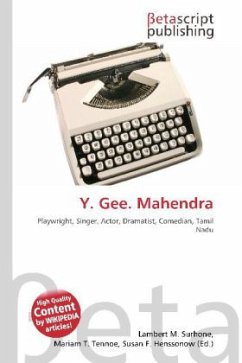 Please note that the content of this book primarily consists of articles available from Wikipedia or other free sources online. Yachan Gunja Mahendran (born 9 January 1950) is an Indian dramatist, actor, singer playwright and comedian from the state of Tamil Nadu. He has acted in a number of plays and films. He is the son of Y. G. Parthasarathy, regarded as one of the pioneers of modern Tamil drama and Rajalakshmi Parthasarathy, founder and dean of Padma Seshadri Bala Bhavan group of schools. He is also the cousin of Latha Rajinikanth. In 1971, Mahendra was cast by legendary director K. Balachander in his film Navagraham. The film was an average grosser. Mahendra was discovered to have a nasal accent which made him funny. He acted in a variety of roles in a number of movies- particularly as a dim witted fool of a cousin- generally eclipsing roles enjoyed by Cho Ramasamy in the 60''s and 70''s.