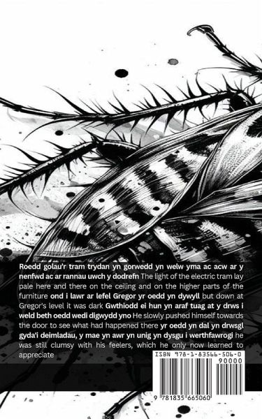 Roedd golau'r tram trydan yn gorwedd yn welw yma ac acw ar y nenfwd ac ar rannau uwch y dodrefn The light of the electric tram lay pale here and there on the ceiling and on the higher parts of the furniture ond i lawr ar lefel Gregor yr oedd yn dywyll but down at Gregor's level it was dark Gwthiodd ei hun yn araf tuag at y drws i weld beth oedd wedi digwydd yno He slowly pushed himself towards the door to see what had happened there yr oedd yn dal yn drwsgl gyda'i deimladau, y mae yn awr yn unig yn dysgu i werthfawrogi he was still clumsy with his feelers, which he only now learned to appreciate Roedd yn ymddangos bod gan ei ochr chwith un graith hir, annymunol o dynn His left side seemed to have one long, unpleasantly tight scar ac roedd yn rhaid iddo limpio'n llythrennol ar ei ddwy res o goesau and he had to literally limp on his two rows of legs Gyda llaw, roedd un o'r coesau wedi'i anafu'n ddifrifol yn ystod digwyddiadau'r bore Incidentally, one of the legs had been seriously injured during the morning's incidents bu bron yn wyrth mai dim ond un o'i goesau a anafwyd it was almost a miracle that only one of his legs was injured a llusgodd ei goes yn ddifywyd and he dragged his leg lifelessly Dim ond pan gyrhaeddodd y drws y sylweddolodd beth oedd wedi ei ddenu yno mewn gwirionedd Only when he reached the door did he realize what had actually lured him there arogl rhywbeth bwytadwy oedd wedi ei ddenu yno it was the smell of something edible that had lured him there