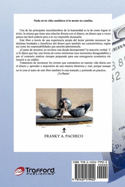 Una de las principales incertidumbres de la humanidad es la de como lograr el éxito, la misma que tiene una relación directa con el dinero, un dinero que a veces parece tan fácil soñarlo pero a la vez imposible alcanzarlo. Este libro a través de una experiencia propia del lector permite reconocer las distintas bondades y beneficios del dinero pero también sus características, reglas así como las responsabilidades que amerita administrarla. ¿Cuanto de nosotros no tuvimos una deuda desesperante? la mayoría verdad. Y si le dijera que hay una forma de como minimizar esos momentos desagradables y por el contrario sentirse siempre preparado para una emergencia económica sin recurrir a un crédito. Trataremos de reconocer los errores que cometemos en nuestra vida diaria con el dinero y aprender a mejorarlos de una manera dinámica y real, porque aunque no lo crea el autor de este libro también lo esta tratando y poniendo en practica. ¡Ya Basta