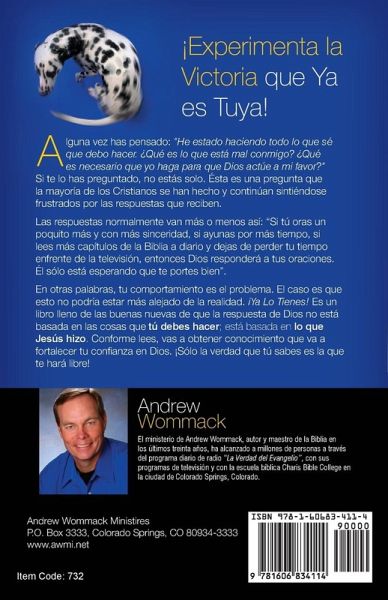 lguna vez has pensado: "He estado haciendo todo lo que sé que debo hacer. ¿Qué es lo que está mal conmigo? ¿Qué es necesario que yo haga para que Dios actúe a mi favor?" Si te lo has preguntado, no estás solo. Ésta es una pregunta que la mayoría de los Cristianos se han hecho y continúan sintiéndose frustrados por las respuestas que reciben. Las respuestas normalmente van más o menos así: "Si tú oras un poquito más y con más sinceridad, si ayunas por más tiempo, si lees más capítulos de la Biblia a diario y dejas de perder tu tiempo enfrente de la televisión, entonces Dios responderá a tus oraciones. Él sólo está esperando que te portes bien". En otras palabras, tu comportamiento es el problema. El caso es que esto no podría estar más alejado de la realidad. ¡Ya Lo Tienes! Es un libro lleno de las buenas nuevas de que la respuesta de Dios no está basada en las cosas que tú debes hacer; está basada en lo que Jesús hizo. Conforme lees, vas a obtener conocimiento que va a fortalecer tu confianza en Dios. ¡Sólo la verdad que tú sabes es la que te hará libre!
