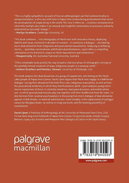 This book analyses the dual alienations of a coastal group rural men, the Murik of Papua New Guinea. David Lipset argues that Murik men engage in a Bakhtinian dialogue: voicing their alienation from both their own, indigenous masculinity, as well as from the postcolonial modernity in which they find themselves adrift. Lipset analyses young men's elusive expressions of desire in courtship narratives, marijuana discourse, and mobile phone use-in which generational tensions play out together with their disaffection from the state. He also borrows from Lacanian psychoanalysis in discussing how men's dialogue of dual alienation appears in folk theater, in material substitutions-most notably, in the replacement of outrigger canoes by fiberglass boats-as well as in rising sea-levels, and the looming possibility of resettlement.