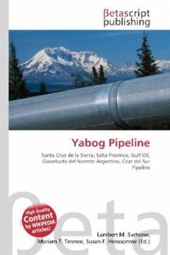 Please note that the content of this book primarily consists of articles available from Wikipedia or other free sources online. Yabog (Yacimientos-Bolivian Gulf) pipeline is a 441 kilometres (274 mi) long natural gas pipeline, which connects Río Grande in Santa Cruz de la Sierra, Bolivia, with Campo Duran in Salta Province, Argentina. The pipeline was commissioned in 1972. A contract concerning YABOG pipeline between the Government of Bolivia and oil companies YPFB and Gulf Oil was signed in August 1968. Financing for the project was provided by the World Bank and US private firms. The construction began in 1970 and the pipeline began operating in 1972. The diameter of the pipeline is 24 inches (610 mm) and the annual capacity is 6.2 billion cubic meter. The Bolivian section is operated by Transredes, a subsidiary of YPFB, and the Argentinian section is operated by Transportadora de Gas del Norte, a subsidiary of Gasinvest S.A.