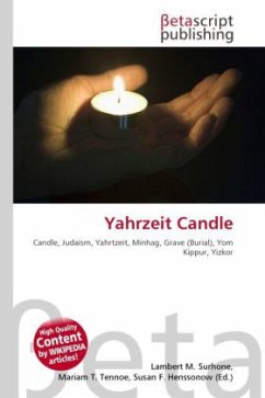 High Quality Content by WIKIPEDIA articles! A yahrzeit candle also spelled yahrtzeit candle or called a memorial candle is a type of candle that is lit in memory of the dead in Judaism. The use of a yahrzeit candle is a widely practiced custom, where mourners light a yahrzeit candle that burns for 24 hours, on the anniversary of the death on the Hebrew calendar. The word "yahrzeit" itself means "anniversary" (or more specifically "anniversary [of a person's death]") in Yiddish, originating from German 'Jahr', year, and 'Zeit', time. It is customary to light the candle inside one's home, or near the grave of the deceased. The candle is also lit on Yom Kippur and there are also customs to light a yahrzeit candle on the dates when yizkor is said (Yom Kippur, Shemini Atzeret, seventh day of Pesach, and Shavuot).
