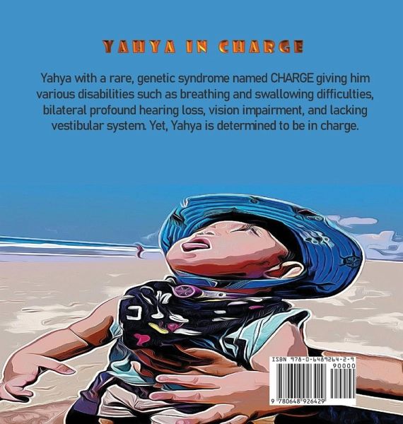 Based on real-life events of my son, Yahya, from birth to three years. During this period, we discovered ourselves and messages echoed in our mind that turned into faith. This book is from our hearts to everyone who is seeking a little comfort and meaning to their unique situation. Also, we would like others to have a glance at a "special needs" life hoping to increase awareness and reduce prejudice. The book follows simple comic and graphic pictures to demonstrate our journey. Yahya has a rare genetic syndrome named CHARGE giving him various disabilities of bilateral profound hearing loss, vision impairment, missing vestibular system, feeding, and breathing problems. Yet he is very determined and resilient which has taught us so much. Dive I dived in, not that I knew how to swim. I tried to be him, not that I knew how to feel. Then there was fear, pain, pressure above and within. Throbbing chest, squeezing throat, and gasping lungs; they were all dragging me down. I let go, closed my eyes; just like him. Then there was calm, there was a guide, escorting me around. It was real, shutting my ears; just like him. Then there was a wave, floating me above. Wiggly trunk, wobbly legs, and extended arms; to help me rise. I signed in, danced my fingers; just like him. Then there was a talk and connection; I could love. It was real, reaching my soul; just like him. Then there was a reason, there was a cause to be around. Please read the book, to know him. Do not forget to let us know what you think of Yahya's adventures. Your review and advice not only will help other buyers but also will help Yahya grow brighter. Related keywords to used images: Charge syndrome; children's learning disorders; sensory processing disorders; disconnected kids without balance; coping and distraction; attention deficit disorders; emotional healing, helping kids; children's humour; children's health books; oral aversion, brushing therapy, complex disability; cochlear implants; glasses; vision impaired; early interventions; intensive therapies; weekly sessions; tracheostomy; hospitals stay; strong families; happiness; destiny; awareness; reduce prejudice; kids with differences inclusion; different is good; beautiful souls; happy dance; real heroes; autism; short journey; the chosen ones; delayed growth.