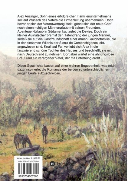 Alex Auzinger, Sohn eines erfolgreichen Familienunternehmens soll auf Wunsch des Vaters die Firmenleitung übernehmen. Doch bevor er sich der Verantwortung stellt, gönnt sich der neue Chef noch einen richtigen Männerurlaub mit seinen Freunden. Abenteuer-Urlaub in Südamerika, lautet die Devise. Doch ein kleiner Ausrutscher bremst den Tatendrang der jungen Männer, sodaß sie auf die Gastfreundschaft einer armen Gauchofamilie, die in der einsamen Wildnis der Sierra de Comenchigones lebt, angewiesen sind. Knall auf Fall verliebt sich Alex in die faszinierend schöne Tochter des Hauses und beschließt, sie mit nach Deutschland zu nehmen. Dort aber wartet eine ahnungslose Braut und ein verärgerter Vater, der mit Enterbung droht.