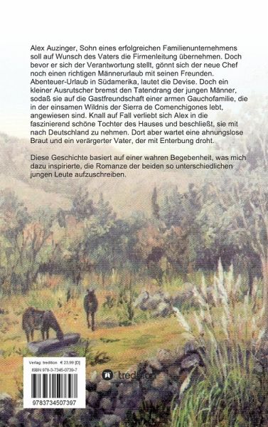 Alex Auzinger, Sohn eines erfolgreichen Familienunternehmens soll auf Wunsch des Vaters die Firmenleitung übernehmen. Doch bevor er sich der Verantwortung stellt, gönnt sich der neue Chef noch einen richtigen Männerurlaub mit seinen Freunden. Abenteuer-Urlaub in Südamerika, lautet die Devise. Doch ein kleiner Ausrutscher bremst den Tatendrang der jungen Männer, sodaß sie auf die Gastfreundschaft einer armen Gauchofamilie, die in der einsamen Wildnis der Sierra de Comenchigones lebt, angewiesen sind. Knall auf Fall verliebt sich Alex in die faszinierend schöne Tochter des Hauses und beschließt,…mehr