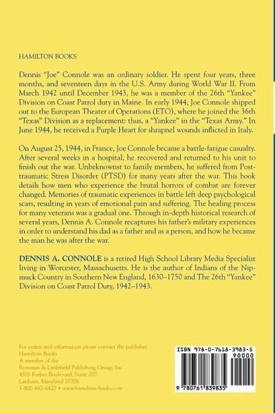 This book details how men who experience the brutal horrors of combat are forever changed. Memories of traumatic experiences in battle left deep psychological scars, resulting in years of emotional pain and suffering. The healing process for many veterans was a gradual one.Through in-depth historical research of several years, Dennis A. Connole recaptures his father's military experiences in order to understand his dad as a father and as a person, and how he became the man he was after the war.