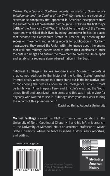 "Michael Fuhlhage's Yankee Reporters and Southern Secrets is a welcomed addition to the history of the United States' greatest internal crisis. What makes this study stand out is the innovative idea of considering the press as open source intelligence, which it most certainly was. After Harpers Ferry and Lincoln's election, the South armed itself and organized those arms, and this was in plain view for anybody who wanted to see it. Fuhlhage does yeoman's work mining the record of this phenomenon." -David W. Bulla, Augusta University