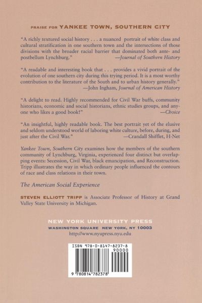 One of the most hotly debated issues in the historical study of race relations is the question of how the Civil War and Reconstruction affected social relations in the South. Did the War leave class and race hierarchies intact? Or did it mark the profound disruption of a long-standing social order? Yankee Town, Southern City examines how the members of the southern community of Lynchburg, Virginia experienced four distinct but overlapping events--Secession, Civil War, Black Emancipation, and Reconstruction. By looking at life in the grog shop, at the military encampment, on the street corner, and on the shop floor, Steven Elliott Tripp illustrates the way in which ordinary people influenced the contours of race and class relations in their town.