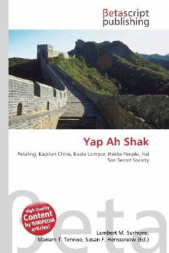 Please note that the content of this book primarily consists of articles available from Wikipedia or other free sources online. Kapitan China Yap Ah Shak of Petaling was one of the last three Kapitans China of nineteenth-century Kuala Lumpur. He was a wealthy Huizhou Hakka merchant and a Hai San leader. Yap Ah Shak was selected by Wong Ying, a prosperous Cantonese miner and several others to take over from Kapitan China Shin (Sheng Ming Li) of Sungai Ujong six months after the disturbances there had died down. The late Kapitan Shin was slain in the 1860 uprising of the Chinese miners at Sungai Ujong attributed to excessive taxation by the local Malay chiefs. Yap Ah Shak then passed the title to Yap Ah Loy in 1859. Yap Ah Shak moved from Sungai Ujong to Kuala Lumpur in 1870 and, even after passing on his title to Yap Ah Loy, continued to serve as magistrate for the settlement of Chinese disputes and as High Court Assessor.