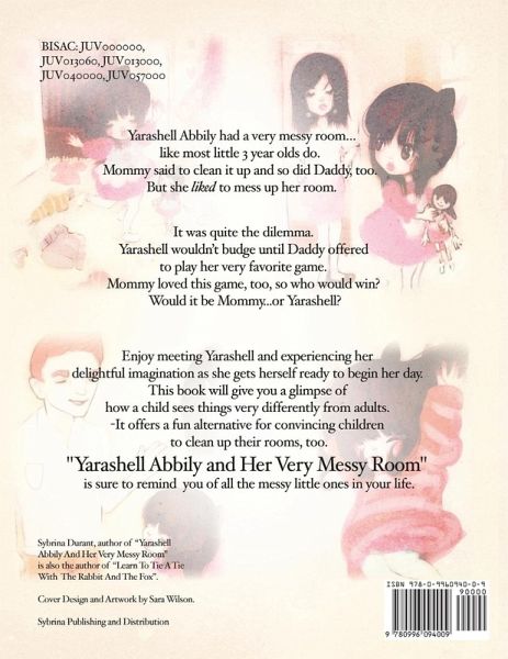 Yarashell Abbily had a very messy room...like most little 3 year olds do. Mommy said to clean it up and so did Daddy, too. But she LIKED to mess up her room. It was quite the dilemma. Yarashell wouldn't budge until Daddy offered to play her very favorite game. Mommy loved this game, too, so who would win? Who would win the game? Would it be Mommy...or Yarashell? Enjoy meeting Yarashell and experiencing her delightful imagination as she gets herself ready to begin her day. This book will give you a glimpse of how a child sees things very differently from adults. Yarashell is sure to remind you of all the messy little ones in your life. With its sing-song verse, this book is a great family read. The accompanying song can be heard for free at sybrina.com.
