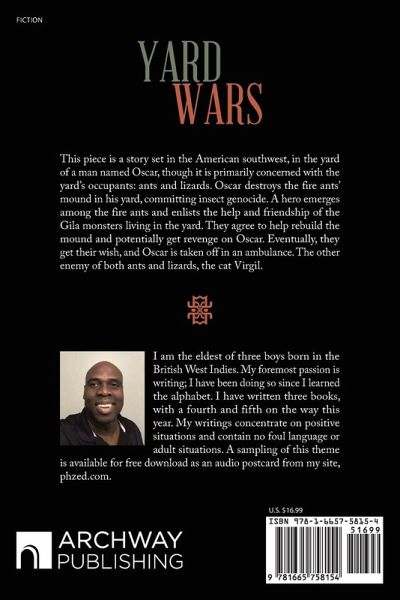 This piece is a story set in the American southwest, in the yard of a man named Oscar, though it is primarily concerned with the yard's occupants: ants and lizards. Oscar destroys the fire ants' mound in his yard, committing insect genocide. A hero emerges among the fire ants and enlists the help and friendship of the Gila monsters living in the yard. They agree to help rebuild the mound and potentially get revenge on Oscar. Eventually, they get their wish, and Oscar is taken off in an ambulance. The other enemy of both ants and lizards, the cat Virgil.